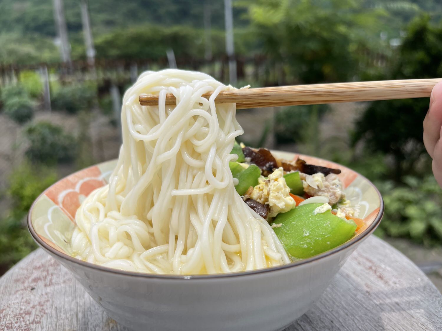 對了~品嚐絲瓜麵時,可撒些白胡椒粉提香氣,喜歡吃辣可以放新鮮辣椒碎!
